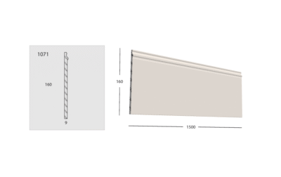 Dekorační bordura 1071 jedná se o originální profil navržený týmem designerů naší štukatérské dílny. Tato dekorační bordura vznikla na zakázku, ale jistě najde bohaté uplatnění v mnoha dalších interiérech. Skvěle doplňuje výzdobu zdí, stropů a nástěnných rámů. Pro svou jednoduchost má tato dekorační bordura univerzální uplatnění.