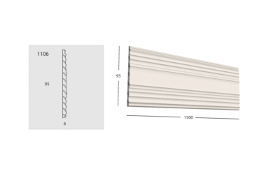Dekorační bordura 1106 – tento profil je vhodný k vytváření nástěnných a nástropních zrcátek. Dekorační bordura je originální profil z našich dílen. Dekorační bordura je vyrobena ze štukatérské sádry.