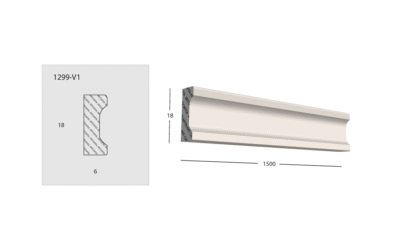 Dekorační lišta 1299-V1 je ultratenká dekorační lišta vyráběná hybridní výrobou (nejedná se o standardní výrobek tažený plechovou šablonou). Její designová síla spočívá právě v její jemnosti – někdy může být méně více. Dekorační lišta 1299-V1 je drobná lišta provázána s produkty 1299-S1, 1299-S2, 1299-V2, 1299-V3 a 1299-V4. Dekorační lišta je navržená z kvalitní čisté sádry. Dekorační lišta vzniká v naší štukatérské dílně.