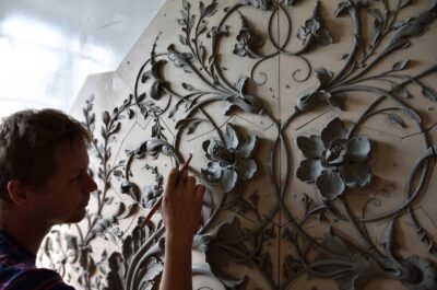 Stropní rozeta Kutnohorská je vyrobena z kvalitní certifikované štukatérské sádry. Sochařská úroveň jednotlivých dílů rozety vládne bravurní modelací a detaily. Rozeta pochází z tvůrčí invence sochaře Ondřeje Dvořáka, který je srdcem a mozkem našeho sochařského týmu. Rozetu Kutnohorskou vám nainstalujeme v interiéru, dle prověřených postupů.