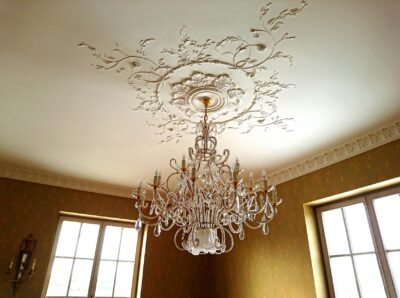 Okruží rozet je nástropní dekorační prvek tvořící stylovou korunu lustru.