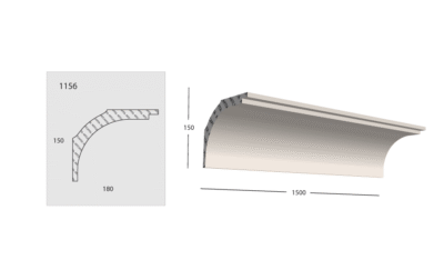 Stropní lišta / fabion 1156 je ze stejné “rodiny” jako fabion 1155. Stropní lišta / fabion 1156 má originální moderní profilaci navrženou našimi designéry. Tradičně je stropní lišta / fabion používaná k přechodu interiérové zdi a stropu. Stropní lišta / fabion je vyráběna ručně tažením pomocí námi připravených plechových šablon.