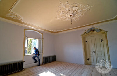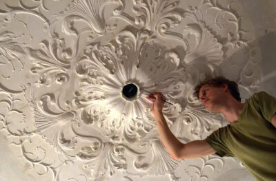 Navrhli jsme barokní rozetu s celou štukovou výzdobou daného interiéru.