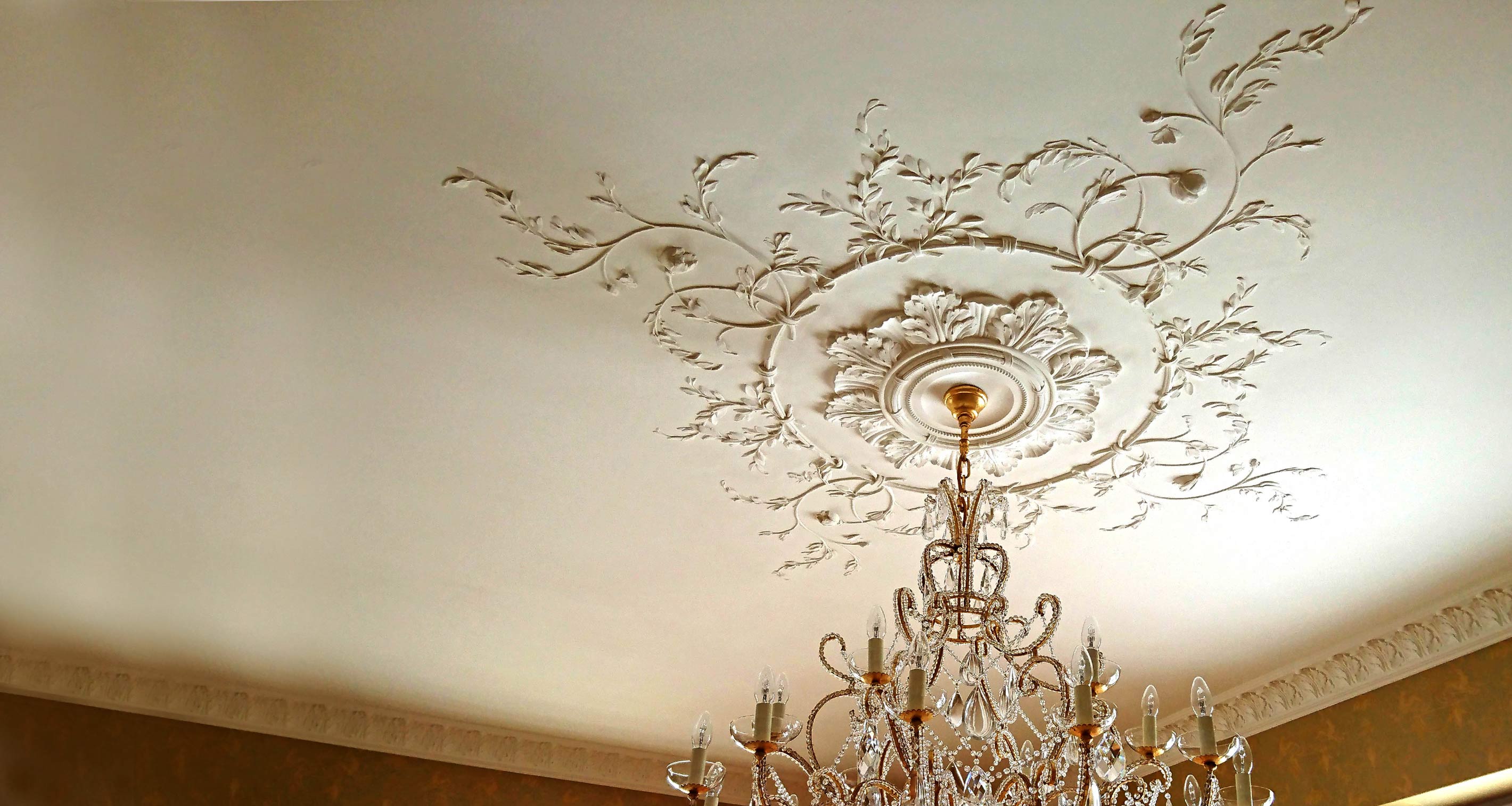 Velká stropní rozeta Jana si ponechává lehkost modelace a vzdušnost kompozice jednotlivých florálních ornamentů. A i když se jedná o prvek klasické architektury, jsme přesvědčeni, že její realistické ztvárnění a těžko zařaditelná stylizace sochařského kánonu jí umožňuje širokou variabilitu použití. To, co jí konečně stylově ukotví, jsou buď další štukatérské prvky, nebo celé vyznění interiéru. Rozeta je středně velká o celkovém průměru 236 cm, ale v interiéru působí velmi vzdušně.
