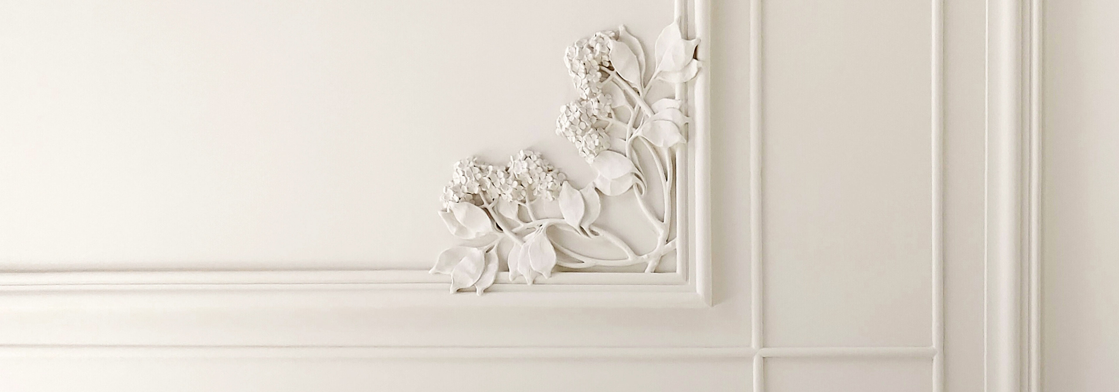 Zdobný roh je modelovaný podle autorského návrhu s motivem hortenzií. Zdobný roh zrcátek z naší štukatérské dílny vyniká propracováním detailů a ostrostí kresby. Zdobný roh je inspirovaný secesní ornamentikou.